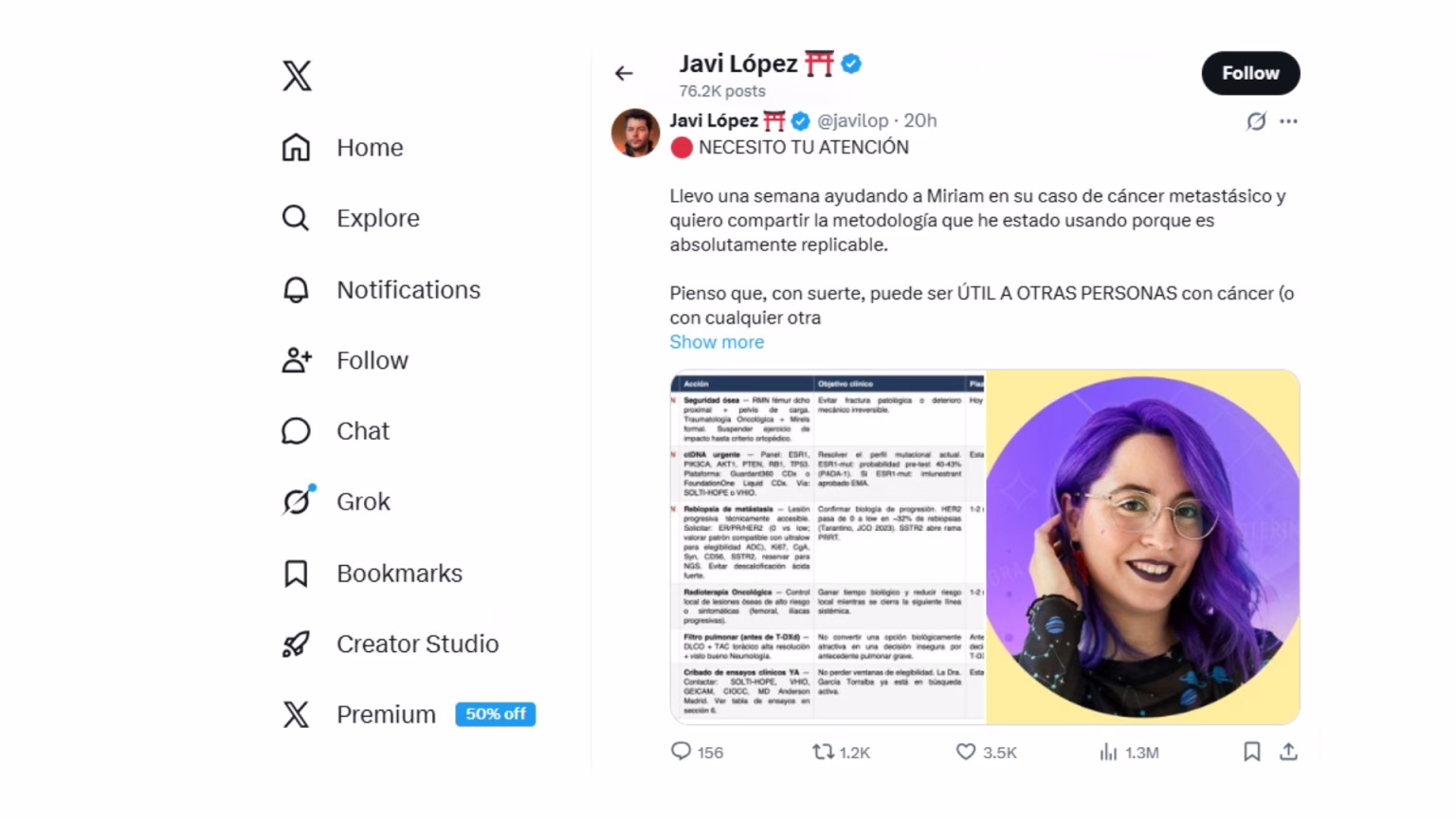 Javi López fue quien se encargó de explicar en su cuenta de X la metodología que llevó a cabo en el caso de Miriam, obviamente con su su permiso. Para llevar a cabo su “experimento” utilizó modelos avanzados de IA, como ChatGPT Pro + Extended y Claude Opus 4.6 MAX. El primer paso fue reunir todo el historial médico de Míriam en un único documento claro y legible. El objetivo fue unificar informes, pruebas y documentos acumulados durante años. Este trabajo previo resultó clave para que la inteligencia artificial pudiera analizar la información sin perder detalles.