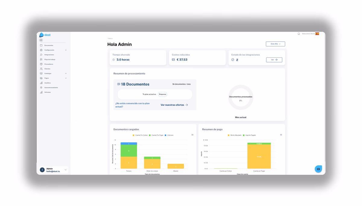 La propuesta de Dost se canaliza a través de una plataforma SaaS que automatiza el ciclo completo de gestión de proveedores: recepción de facturas y pedidos, conciliación three-way matching y conexión directa con los principales ERPs usados por grandes empresas.